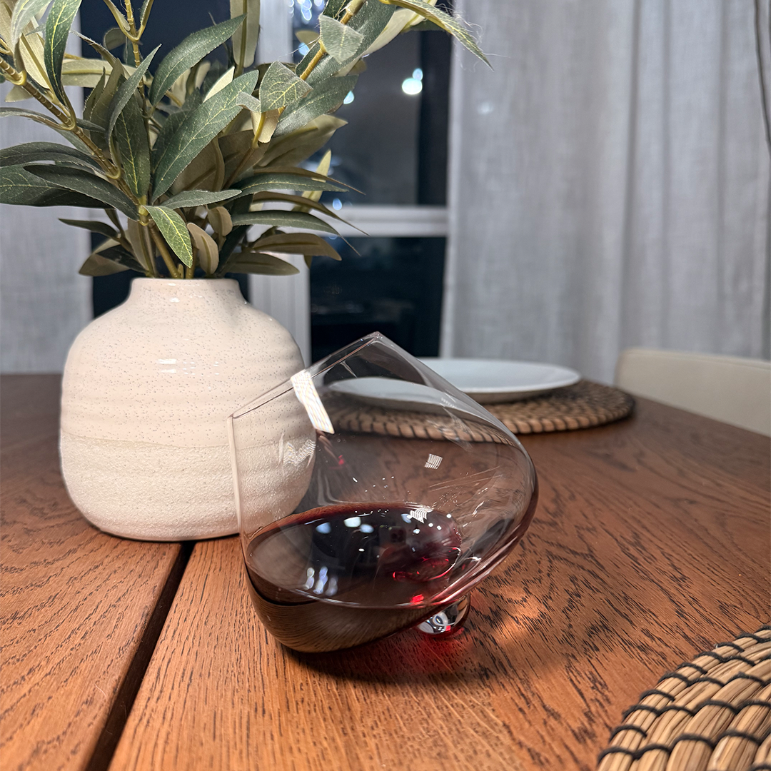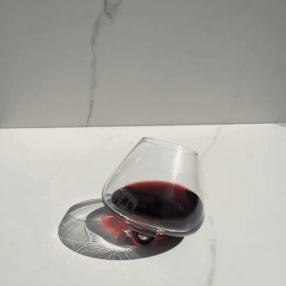 No. The KAMI glass is engineered with a perfectly balanced kinetic pivot point. It spins flawlessly without spilling a single drop, even when full, giving you a worry-free experience.