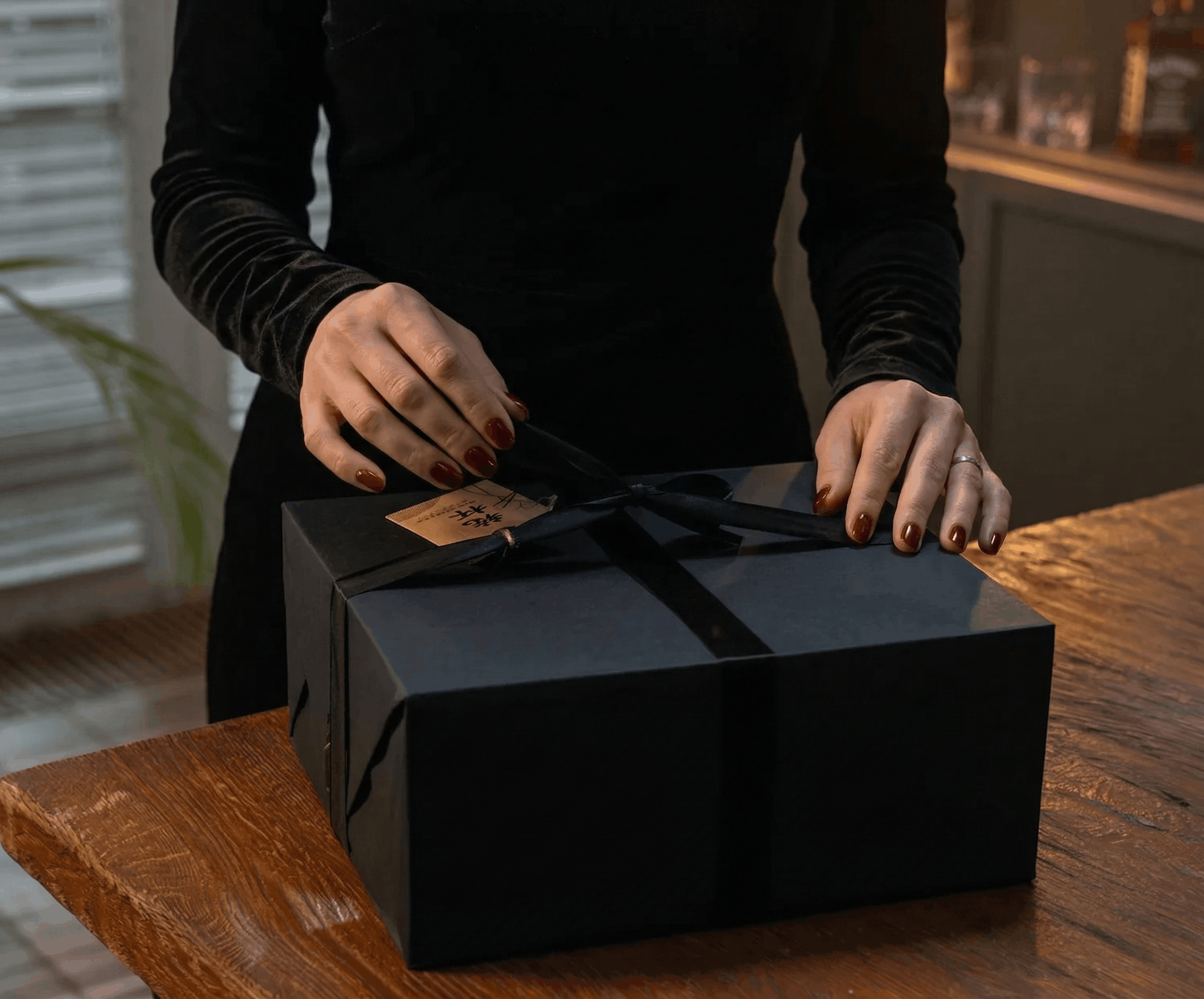 Each Box Set is individually gift-wrapped in our signature premium box with a protective foam insert, finished with elegant black wrapping and a black ribbon. Every set includes a gift tag and a care card fully ready to gift with no additional wrapping needed.