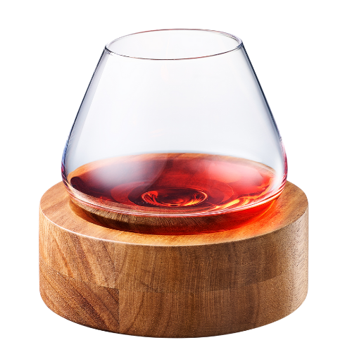 he Kami features a specially weighted base that allows it to rotate smoothly on its wooden coaster. As it spins, your wine is gently aerated - releasing aromas and softening tannins in real time. No decanter needed.